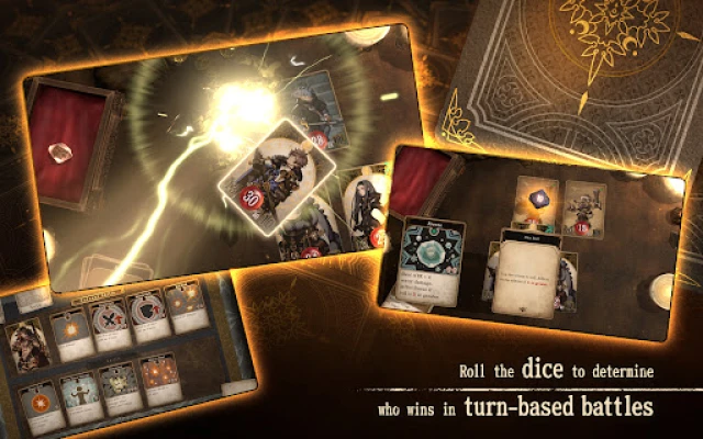 Bitke se odvijaju potezno, gdje strateško korištenje dragulja, koje dobivate svakim potezom, predstavlja ključ za oslobađanje moćnih vještina i put do pobjede. Ali vaša sudbina ne leži samo u kartama; bacanje kocke može preokrenuti tijek bitke, nanoseći dodatnu štetu ili prizivajući statusne efekte koji mogu odlučiti ishod. Svaki potez je odluka, a svako bacanje kocke donosi uzbuđenje i neizvjesnost prave avanture.