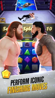 Osvojite ring u jedinstvenom puzzle sustavu borbe gdje svaki potez broji. Spojite tri dragulja kako biste oslobodili razorne napade i primijenili prepoznatljive završne poteze poput Stone Cold Stunnera, Rock Bottoma ili Styles Clasha. Svaka bitka nudi taktičku dubinu: prilagodite sposobnosti svojih superzvijezda, unajmite trenere za poboljšanje njihovih vještina i strateški odaberite razred borca – bilo da su to Tehničari, Napadači ili drugi – kako biste prevarili svoje protivnike. Napredujte kroz mečeve, skupljajte iskustvo i neprestano usavršavajte svoj tim za natjecateljske dvoboje u svijetu sportske zabave.